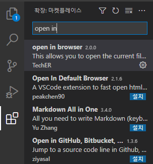 마켓플레이스에서 open int browser을 찾아서 다운받아주면 된다.