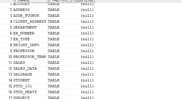 - 현재 접속한 데이터베이스 계정에 생성된 모든 테이블 이름을 확인