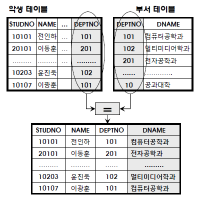 | ANY, SOME | 메인 쿼리의 비교 조건이 서브쿼리의 결과중에서 하나라도 일치하면 참, '='만 비교만 가능 |