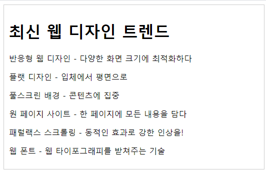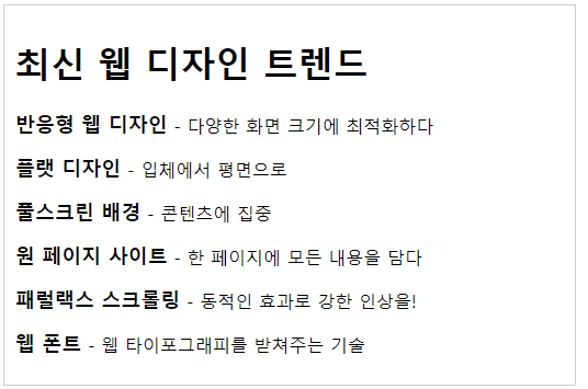 <h1>웹 디자인 트렌드를 따라잡는 비법 대공개!</h1>