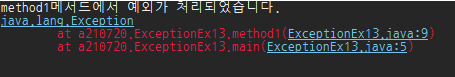 System.out.println("method1메서드에서 예외가 처리되었습니다.");